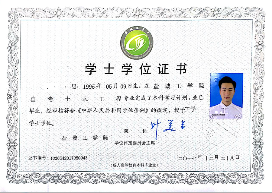 经过盐城工学院学位评审委员会评审,我校2017届盐城工学院自考助学本科专业152名毕业生中,有133人符合学位条件,决定授予学士学位。